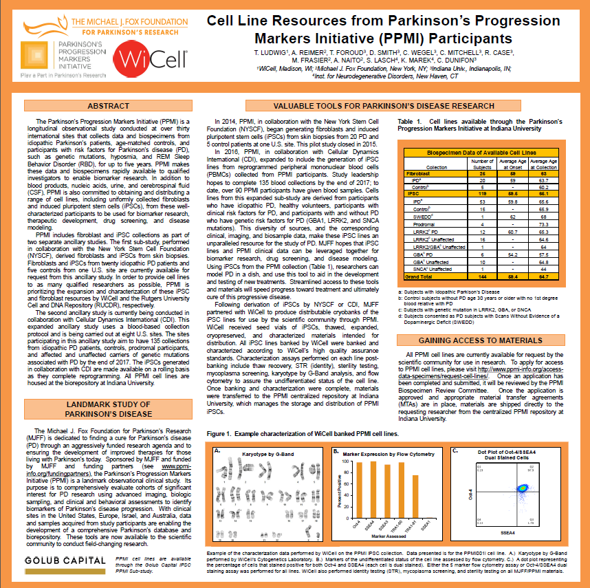 Cell line resources from Parkinson’s Progression Markers Initiative (PPMI) participants