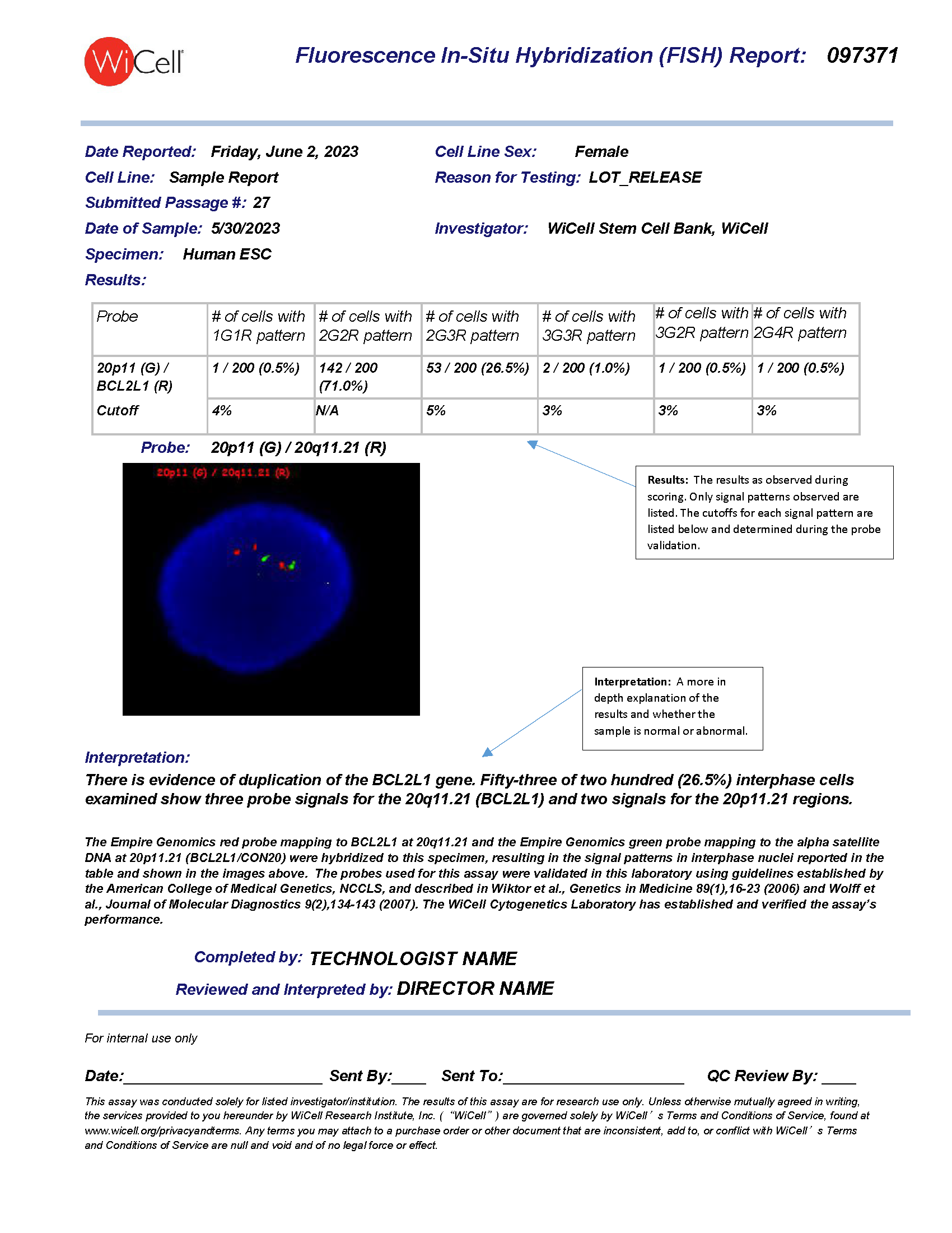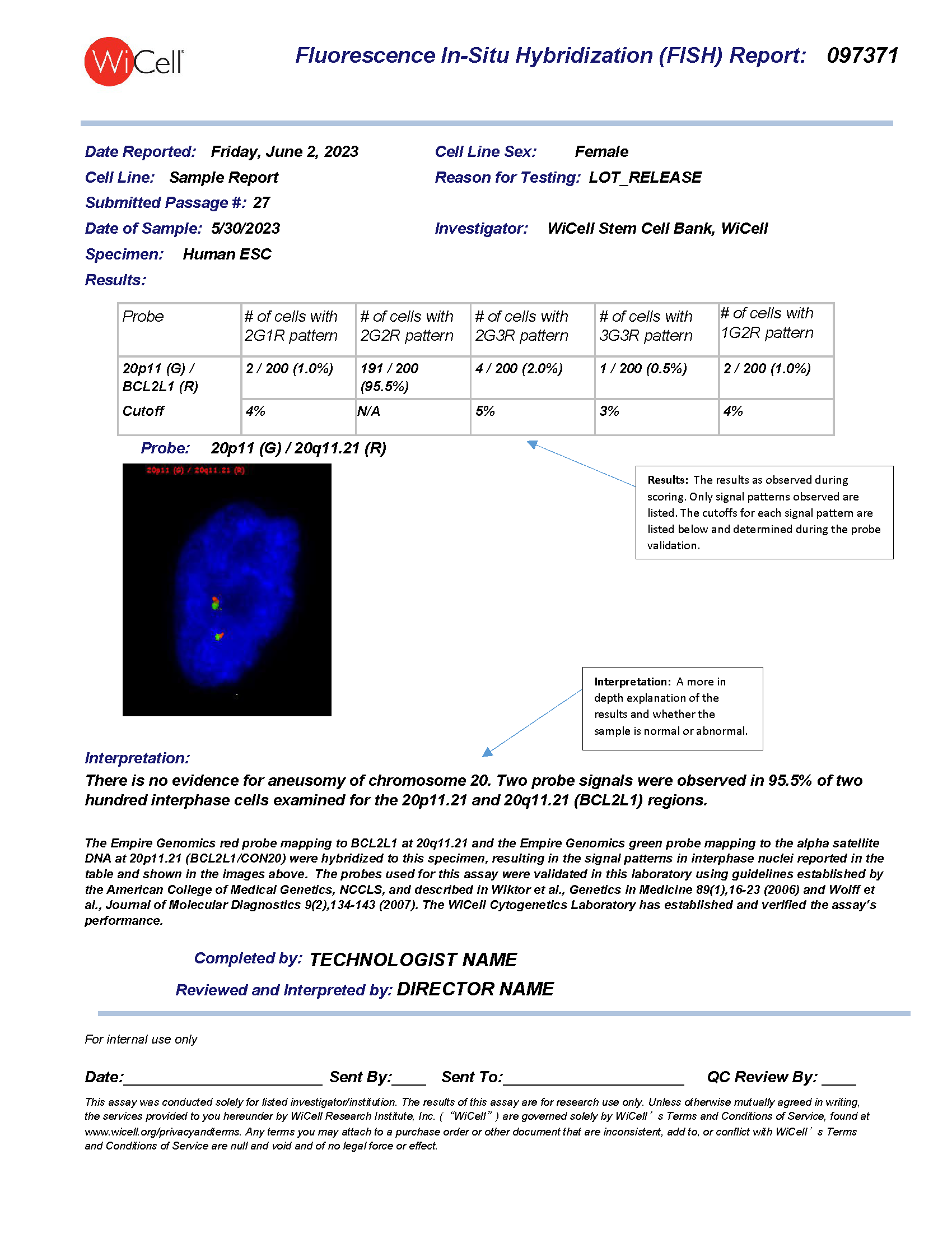 When testing is complete you will receive a Fluorescence In-Situ Hybridization (FISH) Report. In the sample reports below you will find detailed information to help interpret your results.