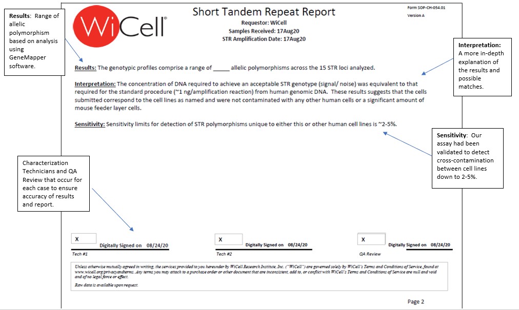 When Short Tandem Repeat is performed you are provided with a STR Analysis Report. In the sample provided below you will find detailed information to help you interpret your STR results.